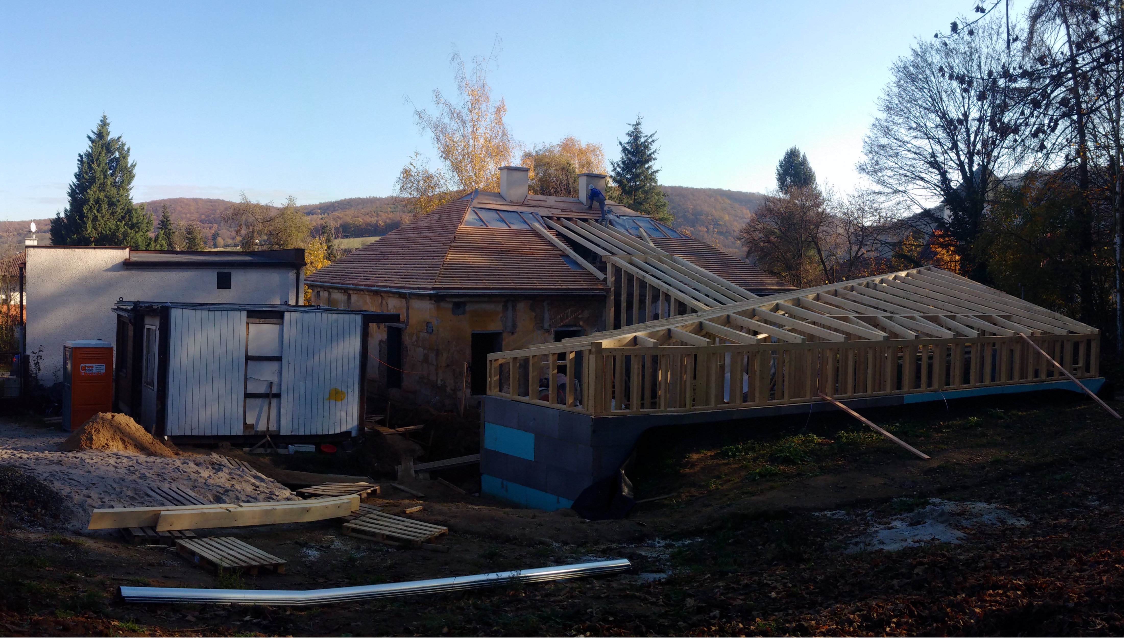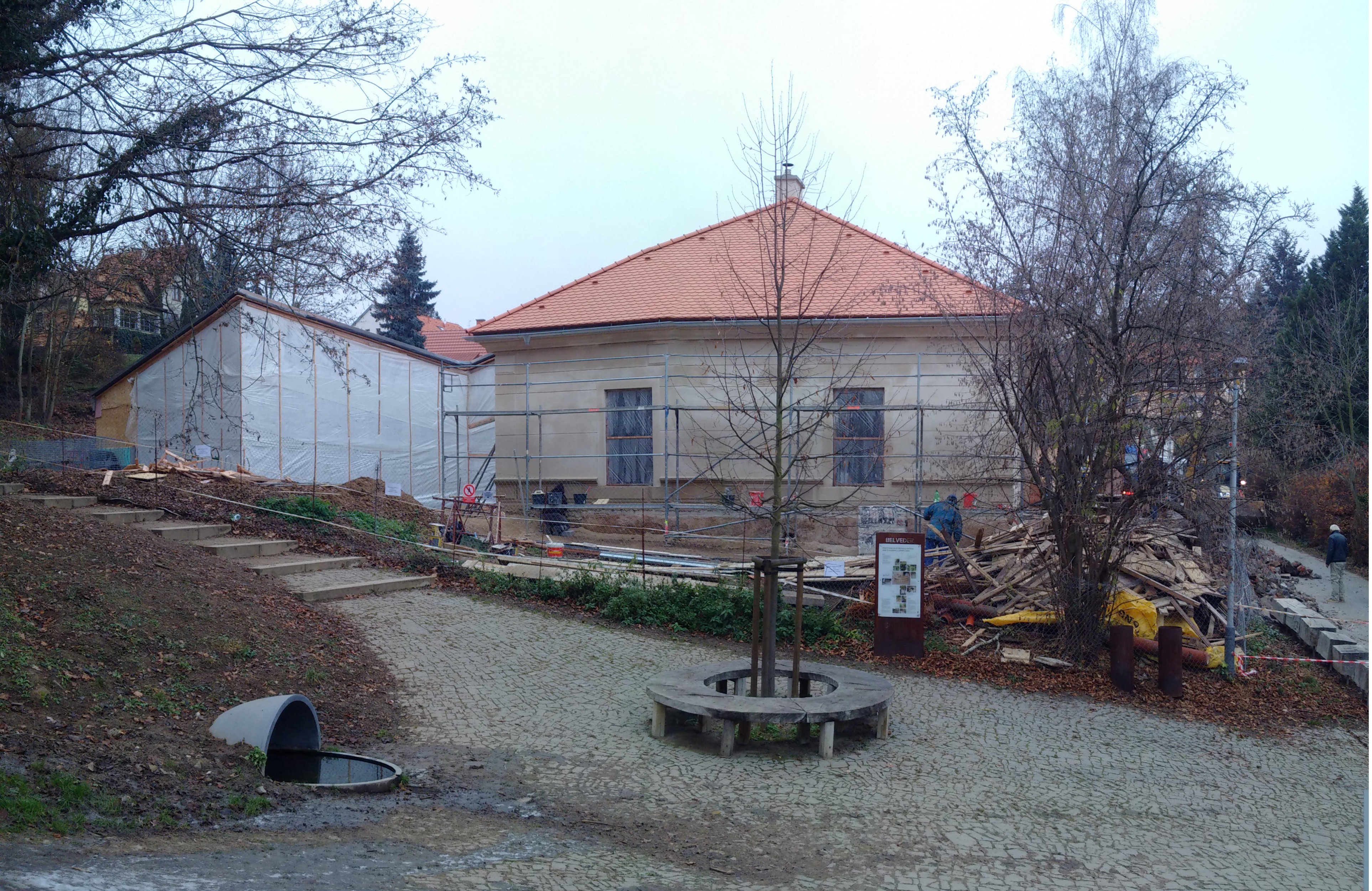 V zarostlé zahradě na kraji lesoparku ve Zbraslavi už dlouho stojí dům, bývalý obecní chudobinec, pak veřejná prádelna a nakonec léta opuštěná chátrající stavba. V okolí rodinné domy a vily v pěstěných zahradách. Město stálo před otázkou, co s ním? Moudře rozhodlo dům nezbourat, ale opravit a znovu využít. Měl totiž své neopakovatelné kouzlo. Místní skauti zde díky tomu našli novou klubovnu, obnovený lesopark sociální zázemí a malou kavárnu pro veřejnost. Vše pod jednou střechou uspořádáno tak, aby byly prostory navzájem propojitelné a zároveň v případě potřeby oddělitelné.