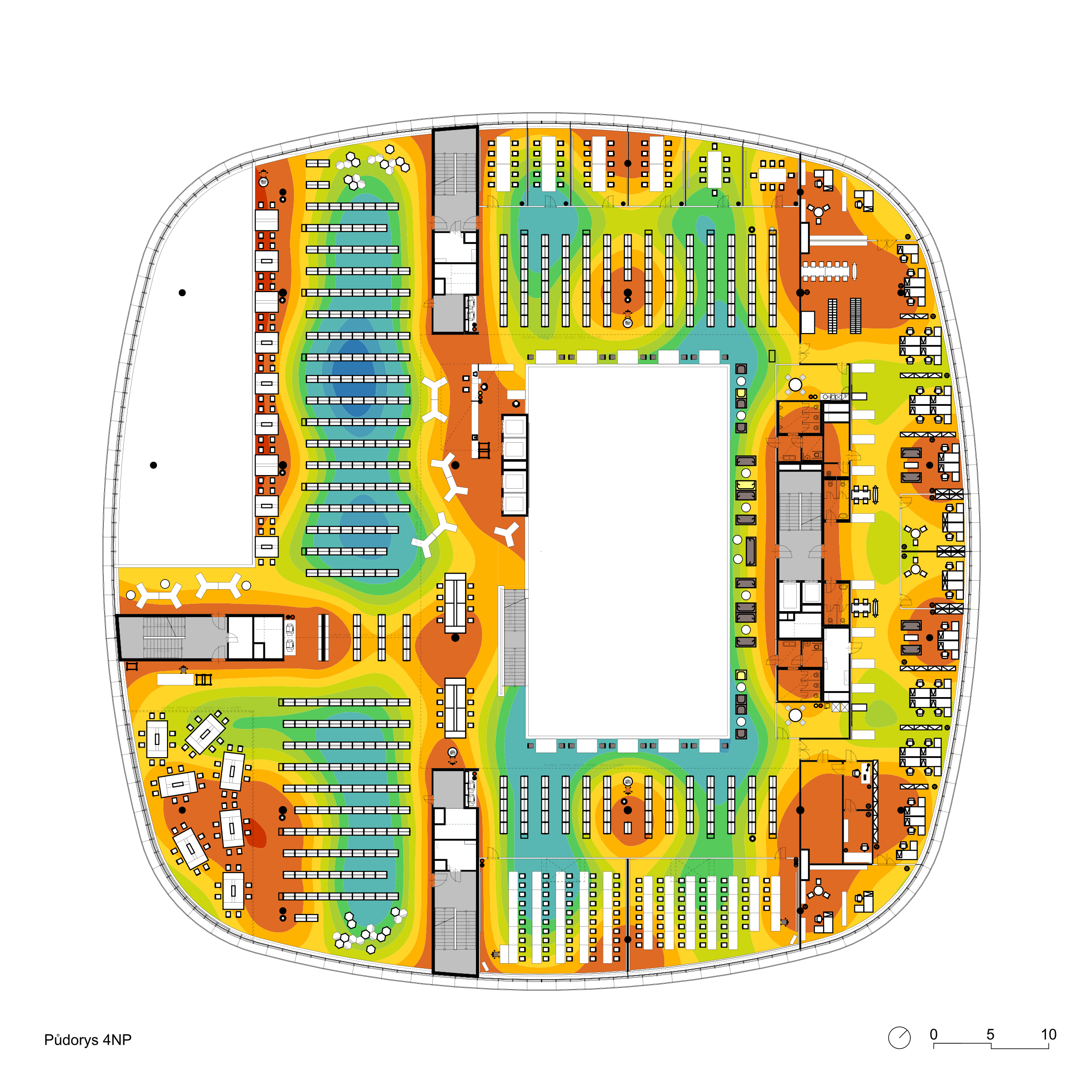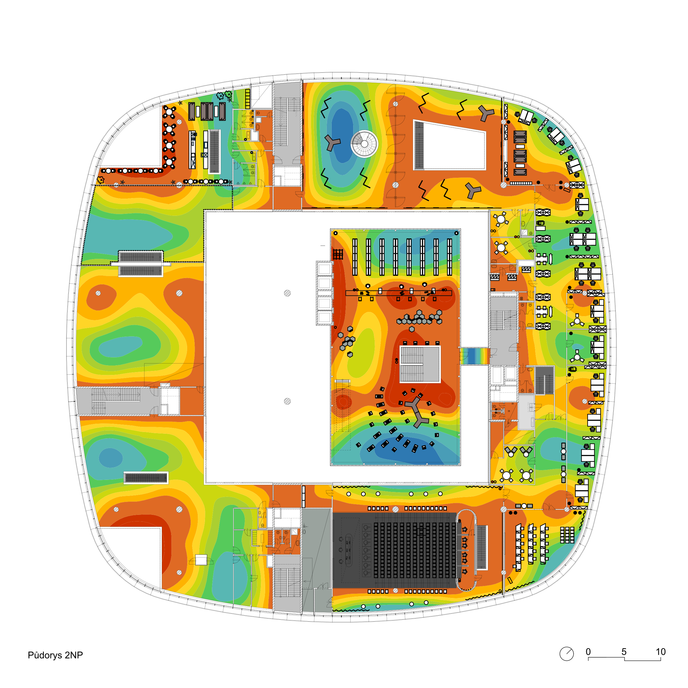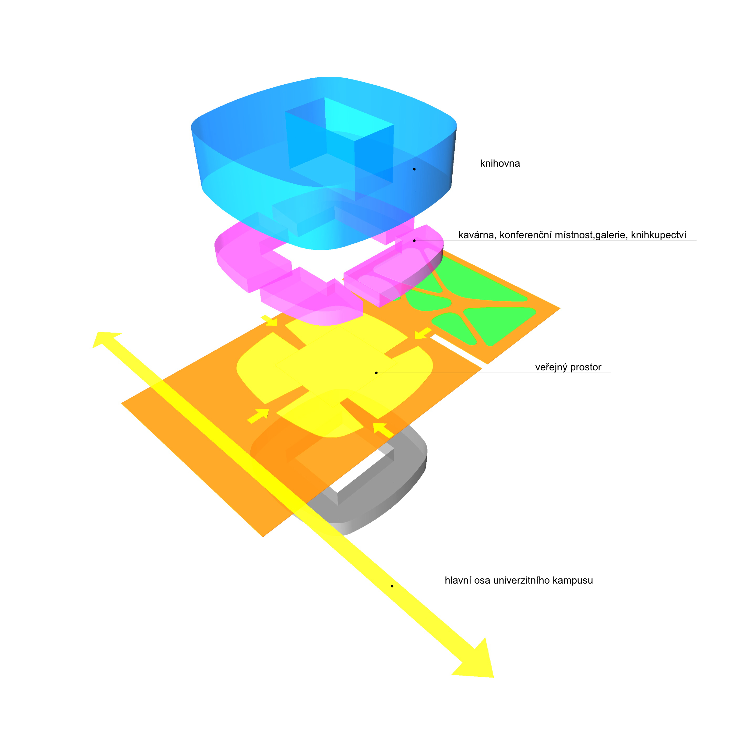 Budova NTK respektuje původní plán Dejvic, zapojuje i objekty mimo hlavní osu campusu a vytvořením různých předprostorů nabízí nové pobytové možnosti. Je srdcem campusu technických vysokých škol. Uzavřená forma na půdorysu sférického čtverce vizualizuje ochranu a soustředění. Oproti čtverci nebo kruhu je dispozice svobodná a zachovává dobrou orientaci. Tu podporuje centrální dvorana s horním osvětlením. Knihovna je centrem informací okolních vysokých škol i servisem pro různé technické vědy. Proto budova není orientována, nemá hlavní fasádu ani vstup, ale vstupy čtyři. Fasáda knihovny je neprodyšně i když průhledně až průsvitně uzavřena skleněným pláštěm - vnější hranicí. Směrem dovnitř od ní je rozostřený hutný prostor s hloubkou zobrazenou vloženými prvky – vnitřní svět knihovny. Vytváří se tak pocit vstřícnosti a otevřenosti zároveň s viditelným ohraničením, které zdůrazní bezpečnost a jasnost celku. Průlom do vlastní knihovny je až ve vnitřní hale a je citelný – pocit významnosti, který k institucím patří.